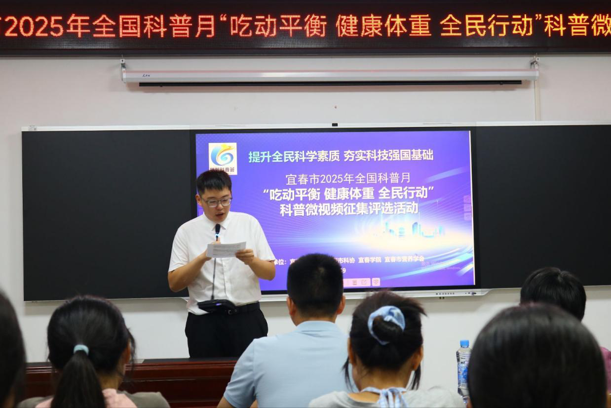 本站讯(通讯员刘佳玲 周宏宇)2025年9月29日,以“提升全民科学素质 夯实科技强国基础”为主题的大学生健康科普微视频决赛,在宜春学院厚德校区至善楼东三401成功举办。本次赛事由宜春市卫健委、宜春市科协、宜春市营养学会、宜春学院公共卫生与健康学院(美容医学院)联合开展,旨在深化校地联动,引导我校学生以微视频形式从专业视角传播“吃动平衡”科学知识、展现青年健康实践思考,助力提升宜春市全民科学素养与健康水平,服务“健康中国”战略,践行全国科普月主旨。