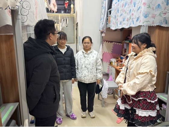 在卫生环境规范方面,检查小组从地面清洁、物品收纳、通风采光等细节入手,实行“合格即肯定、不合格即整改”的现场处置机制。对环境整洁、收纳有序的宿舍予以公开表扬,树立示范标杆;对卫生不达标宿舍明确整改要求与完成时限,指导学生制定整改方案。院领导与师生面对面交流过程中,不仅细致询问学生学习生活状况、倾听合理诉求,更传递学校对学子的关怀与期许,推动“宿舍管理”向“育人服务”深度延伸。