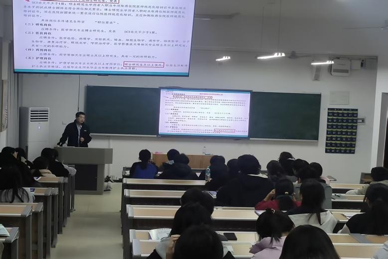 讲座中,王佳涛老师以医学考研发展趋势为切入点,结合近年政策与规培要求,深入解析学硕与专硕的职业发展差异,帮助学生精准定位报考方向