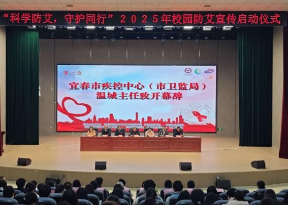 为深入贯彻“健康中国2030”战略,普及艾滋病防治知识,弘扬红丝带精神,凝聚校地协同防艾合力,11月29日,由宜春学院公共卫生与健康学院(美容医学院)联合宜春市卫生健康委(疾控局)、宜春市疾控中心(市卫监局)、袁州区卫生健康委(疾控局)、袁州区疾控中心(区卫监局)共同主办的“科学防艾,守护同行”2025年校园艾滋病防治宣传系列活动圆满落幕。活动以启动仪式为开篇,串联专题讲座、防艾知识市集两大核心板块,通过线上线下联动形式,为全校师生呈现了一场兼具专业性、思想性与趣味性的防艾科普盛宴,覆盖师生超1800人次,发放宣传资料1000余份。