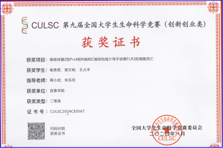 预防医学“三阶递进”模式:该模式通过“教学-科研-实践”三元融合路径,将科研创新能力培养贯穿始终:积极引导本科生融入导师科研团队,近五年累计超50名学生参与“猪链球菌致病机制”等课题研究,参与发表学术论文15人次,其中2人以第一作者身份发表CSCD核心论文。支持“大学生创新创业训练计划”项目,指导学生团队荣获全国大学生生命科学竞赛二等奖、全国青年科普创新大赛江西省二等奖等多项荣誉。