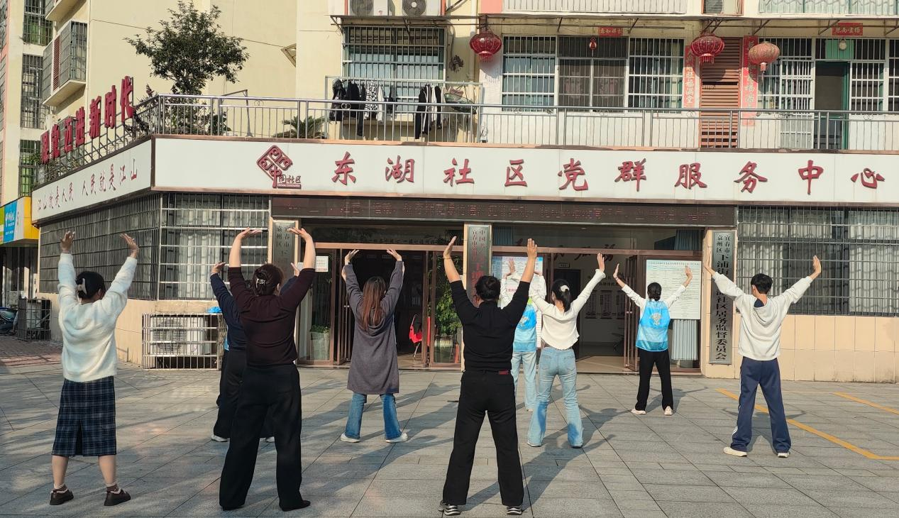 宣讲团中,宜春学院公共卫生与健康学院(美容医学院)师生充分发挥专业优势,聚焦“健康中国”战略部署,开展八段锦展示与教学活动。“八段锦动作舒缓,能调理脾胃、缓解肩颈疲劳,特别适合冬季锻炼。”宣讲团老师涂妍介绍,这是响应全会“推动全民健身和全民健康深度融合”要求的具体举措。学生教练先进行完整展示,再分段拆解动作要领,耐心指导现场居民练习,从呼吸节奏到动作规范逐一细致讲解,老人们听得认真、练得投入,现场互动氛围热烈。