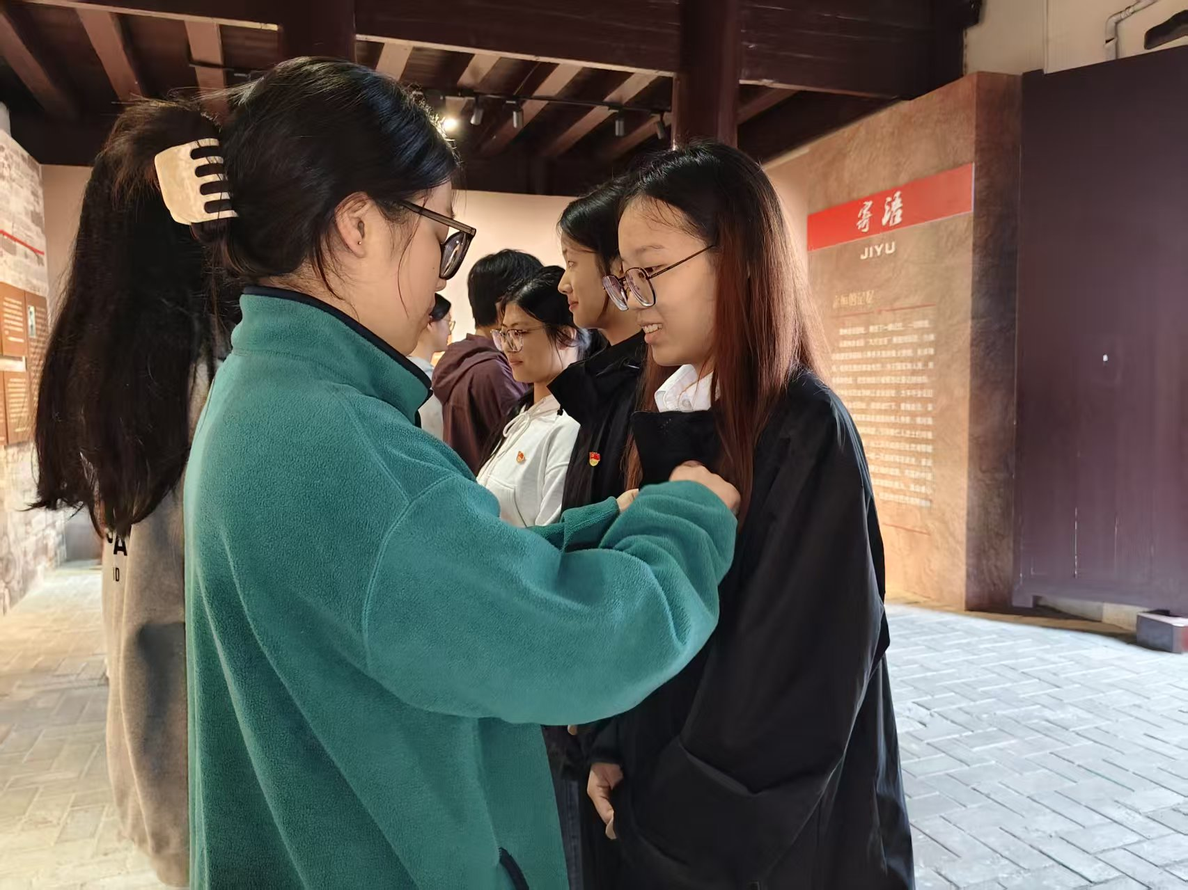 紧接着,是为新发展党员佩戴党员徽章并进行宣誓的庄严时刻。熠熠生辉的党徽佩戴在胸前,新发展党员与老党员们一同面向鲜红的党旗,高举右拳,用铿锵有力的誓言许下了对党的忠诚与为共产主义奋斗终身的坚定承诺。这一刻,初心与使命在革命圣地交汇传承。