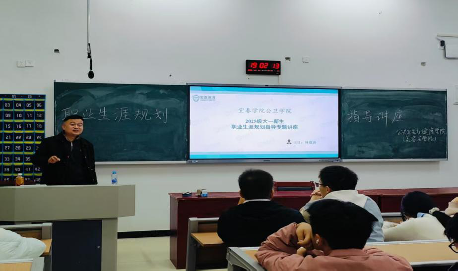 2025年12月8日,宜春学院公共卫生与健康学院(美容医学院)在汇知楼107开展了“规划筑梦 职引新程”专题讲座,讲座中,钟德涛老师解析了国内升学、公务员报考、企业就业、创新创业四条主流发展路径的核心特质与能力要求,通过个人及身边人的职业经历分享,唤醒新生职业规划意识,引导他们将个人成长与国家战略需求相结合。