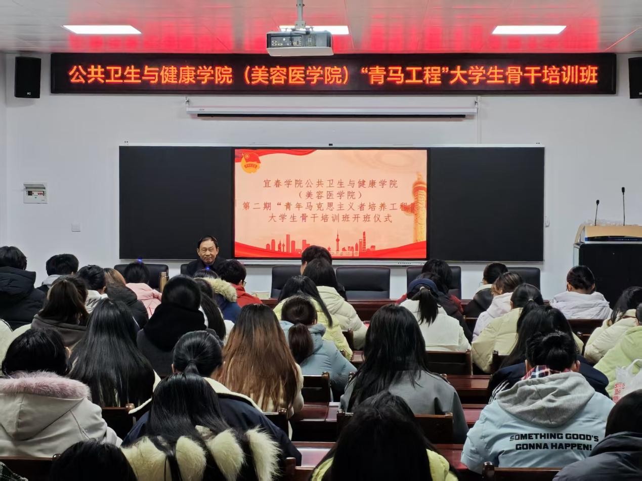 (通讯员 罗玥 李子怡)为深入学习贯彻习近平新时代中国特色社会主义思想,着力培养政治坚定、能力过硬、作风优良的青年学生骨干,12月24日,宜春学院公共卫生与健康学院(美容医学院)第二期“青年马克思主义者培养工程”大学生骨干培训班正式开班。开班仪式后,首场专题授课同步开讲,特邀江西省高校新闻宣传与研究专家、江西省思政工作专家库成员杨健老师担任主讲人。
