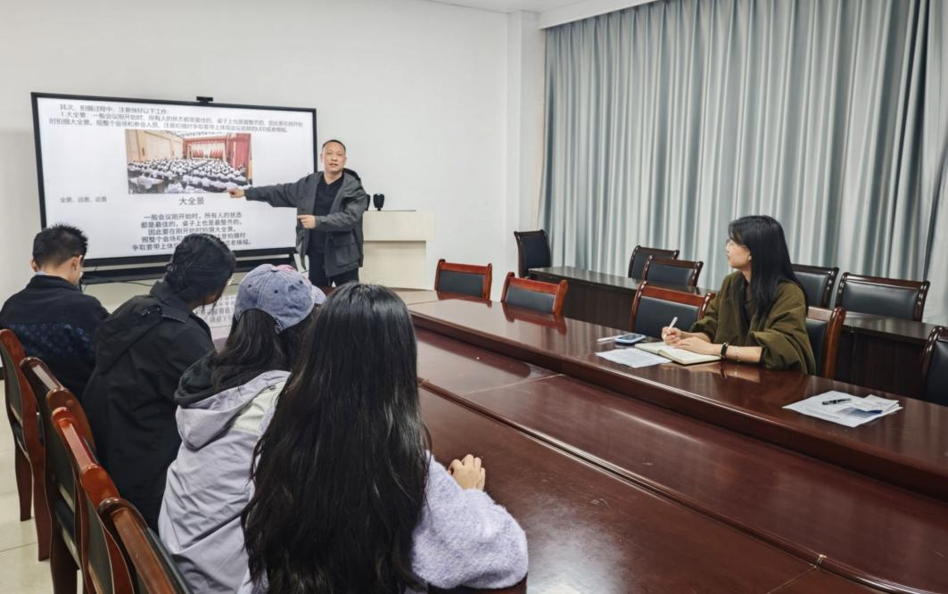 首先,记者站负责人全面回顾了上学期工作成果,并对近期工作重点进行了部署。随后,王锋老师凭借丰富拍摄经验,结合校园新闻拍摄特点,现场剖析日常拍摄中的常见问题,并通过实战演练为记者站成员带来了一场内容充实、实用性强的指导课程。紧接着,记者站骨干干部及优秀干事结合自身实践经历,就工作技巧进行了细致分享。